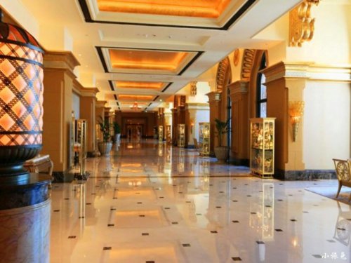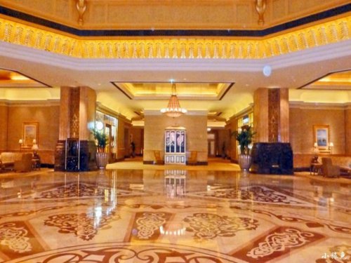 該酒店耗資近30億美元,坐擁85公頃園林和1.3公里黃金海岸,是一座古典式的阿拉伯皇宮式建筑。酒店的外形仿佛是一座水上清真寺,有著濃郁的中東風(fēng)情。其內(nèi)部更是金碧輝煌。據(jù)說(shuō)耗盡22噸純金打造,更有海量的大理石、價(jià)值不菲的油畫(huà)裝飾和上千盞特別定制的施華洛世奇水晶吊燈……據(jù)說(shuō),有10名工作人員專職保持其清潔。