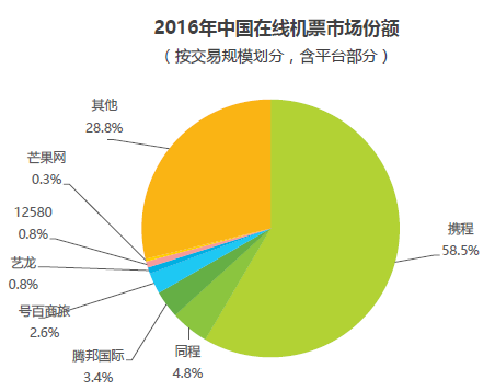 根據(jù)艾瑞咨詢的數(shù)據(jù),2016年攜程在機(jī)票、住宿領(lǐng)域的市場份額分別為58.5%、59.6%;同程在機(jī)票領(lǐng)域以4.8%的份額位居第二,在住宿領(lǐng)域以2.7%的份額位居第四,而美團(tuán)、藝龍分列二、三位。盡管2017年的市場份額還未出爐,但筆者預(yù)計(jì)變化不大。如果藝龍與同程合并,那么在“機(jī)票+住宿”領(lǐng)域,攜程的對手只就剩美團(tuán)了。