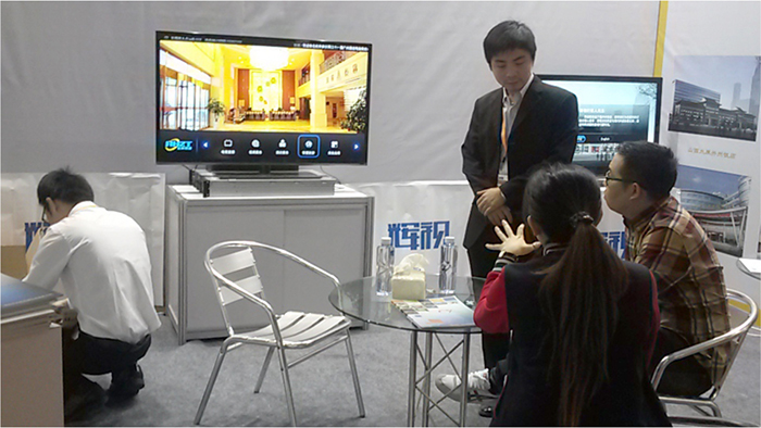 今天上午,由佛興主辦的第二十一屆廣州酒店用品展覽會,在廣州琶洲會展中心開幕。在這場為期三天的國際展覽會上,深圳市宏輝智通科技有限公司的2015最新的智慧酒店視訊系統受邀A4.1-36精彩亮相,其更加精美的系統界面吸引的各界人士的到來,讓每個觀眾都眼前一亮。