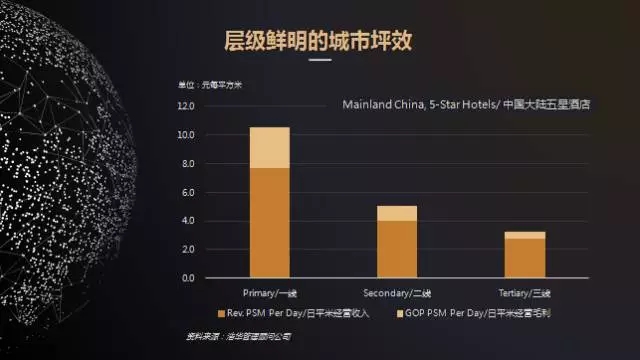 然而,作為一個長期運營的經濟實體,當地產的光環消退,酒店經濟性的重要性便凸顯出來了。星級酒店經濟性的重要指標就是坪效,即每平方米產生的經營收入及經營毛利。在中國過去很少有人談論五星級酒店的坪效業績,究其原因,酒店的坪效乏善可陳。