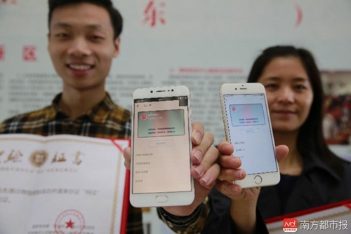 市民代表領取了全國首張微信身份證“網證”。南都記者陳志剛攝