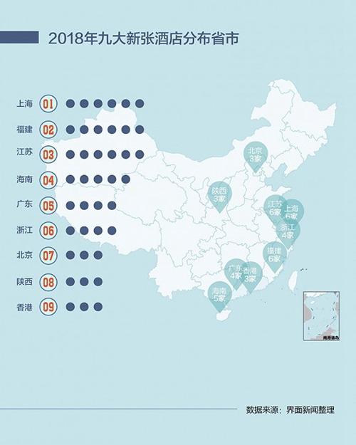2018年九大新張酒店分布省市,主要還是珠三角和長三角