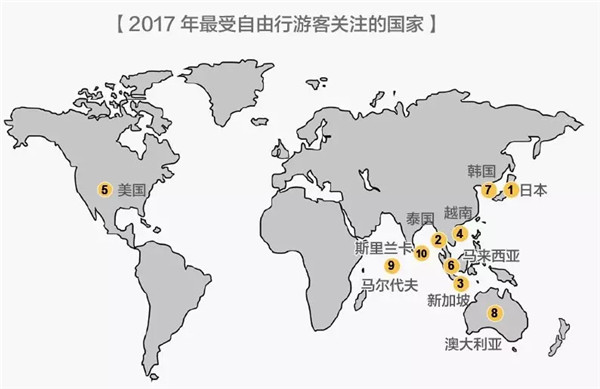 2017年最受歡迎的15 個境外城市全部地處亞洲,其中,日本京都、馬來西亞沙巴和吉隆坡首次上榜。