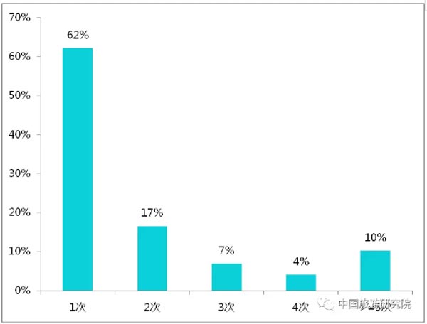 在對(duì)2017年赴歐洲旅游游客的出行頻次分析中可以看出,62%的游客在2017年出行歐洲1次,17%游客出行歐洲2次,高頻出游游客占比較少,降幅較大。中國(guó)赴歐洲飛行時(shí)間較長(zhǎng),旅游花費(fèi)較高,低頻次旅游占比較大。