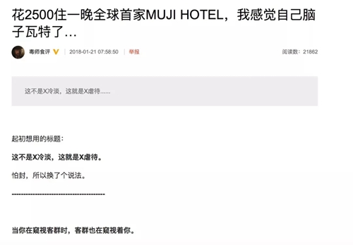 但讓人意想不到的是,就在開業后的第二天,MUJI HOTEL的口碑急轉直下。