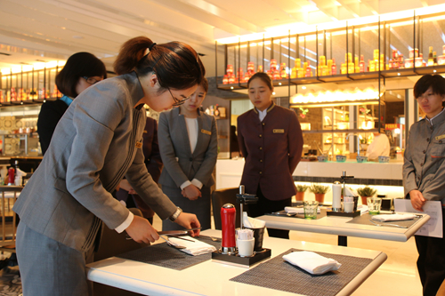與此同時(shí),G20峰會(huì)前夕,酒店針對(duì)接待代表團(tuán)的特殊性,外請(qǐng)培訓(xùn)老師開展多種培訓(xùn),共投入數(shù)萬元培訓(xùn)費(fèi),組織47次,共有1512人次參加。培訓(xùn)包括:5場食品安全、5場安全意識(shí)培訓(xùn)、2場服務(wù)禮儀培訓(xùn)、2場西餐服務(wù)禮儀、6場內(nèi)部援助團(tuán)隊(duì)培訓(xùn)等,讓各部門的同事都能擁有高度的G20服務(wù)意識(shí)和專屬城中香格里拉的服務(wù)精神。