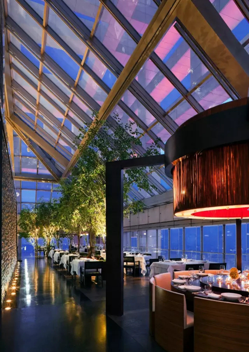 上海IFC(國際金融中心)39層開始就是浦東麗思卡爾頓的客房,最高層58樓俯瞰黃浦江。我曾在53層金軒中餐廳用過一次餐,除了作為一家奢華五星酒店該有的待遇外,自然光投映到以中式浮雕裝飾的鏡面鑲板上,落地窗外滿目的外灘全景是酒店文字介紹里不曾有的。
