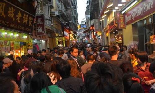 資料圖:澳門街頭游客熙攘。中新社 王國安 攝