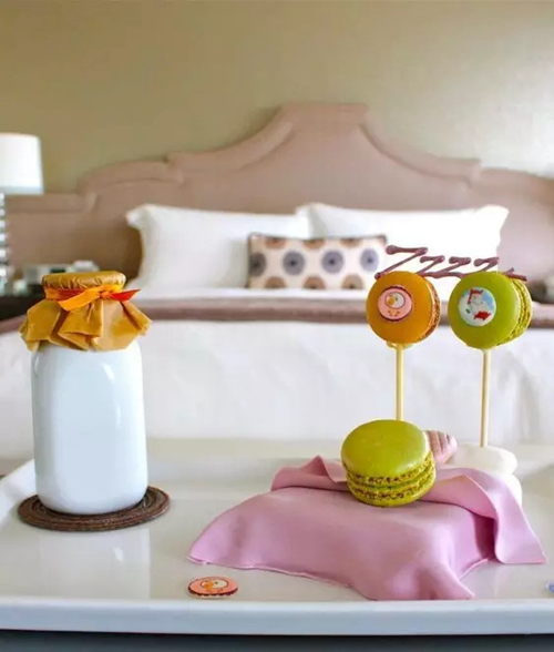 拿巧克力、馬卡龍作為夜床禮物的酒店不在少數(shù),尤其是用巧克力制作當(dāng)?shù)孛麆俟袍E造型。不過大半夜的拿甜食誘人實(shí)在心塞。