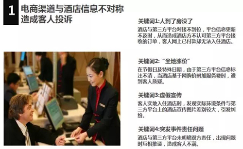 “酒店行業常見的輿情風險主要集中在電商渠道與酒店信息不對稱造成的客人投訴,如到店沒房、酒店節假日‘坐地漲價’、酒店虛假宣傳等,此外還有入住酒店后的人身、財產安全問題,酒店設施與衛生問題,餐飲、食品安全問題造成的輿情危機”,中國傳媒大學互聯網信息研究所/艾利艾智庫研究總監劉蕾說,很多危機是因為酒店線下工作做得不到位。如果在線下做好危險排查,就可以避免形成輿論危機。