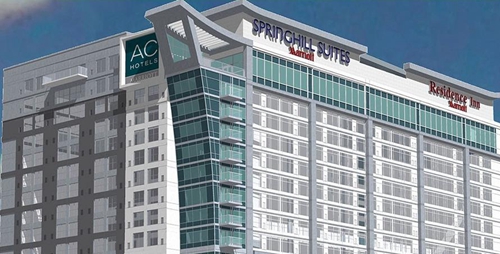 (萬豪國際在美國田納西州首家開創(chuàng)性復合酒店Triple-Branded Property,同一建筑包含萬豪旗下的三個品牌酒店:Autograph Collection,SpringHill Suites以及Residence Inn)