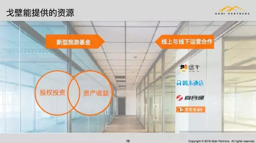 當然現在眾籌的問題大家也看到了,我們會有一個配套的資產收益資金來解決這個問題,也就是我們投資是兩部分的,一部分會投到管理公司,我們給你做一個估值給你投入,我們投的錢是讓你發展人才、系統、品牌的。因為資產上的收益和我們VC要求的收益是不一樣的,我們投途牛可能是三五十年,資產可能前面講了,多彩投也給了很好的例子,年化15%、20%就不錯了。我們也希望通過這兩塊的結合能夠真正幫助到民宿的創業者,右面是我們已經投資的旅游公司,像途牛會有一些流量的合作,上邊周邊的話是周末酒店,五星級酒店的預定是在華東,現在他們也慢慢接受了非標,這是由用戶的需求來決定的。