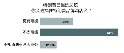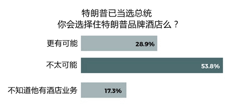 本次調查11月初通過向美國網民發送的Google消費者調查所得出來的結論,11月2號至4號,1542人中的大多數表示總統競選后不太可能會住特朗普品牌酒店。