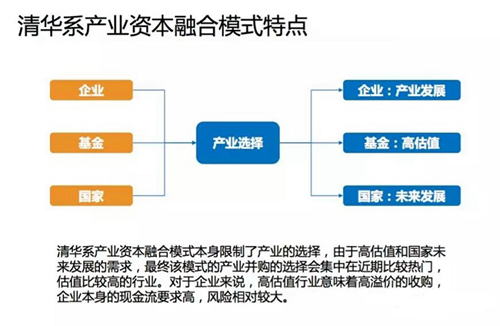 不過,清華系產業資本融合模式本身限制了產業的選擇,由于高估值和國家未來發展的需求,最終該模式的產業并購的選擇會集中在近期比較熱門,估值比較高的行業。對于企業來說,高估值行業意味著高溢價的收購,企業本身的現金流要求高,風險相對較大。