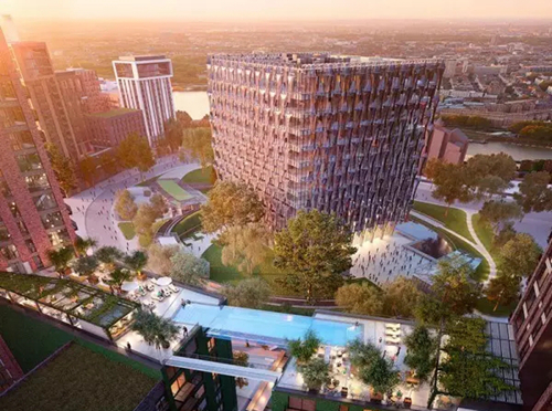空中泳池將充當兩座居民樓之間的橋梁,游泳者可以在游泳時從33米的高空俯瞰這個世界。天空甲板通往兩側(cè)休息區(qū),設有Spa、夏日酒吧、桔園等,站在桔園還可遠眺國會大廈。