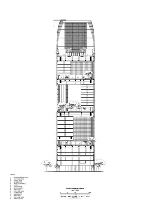 WOHA 最近的一個完工項目是新加坡遠東酒店集團旗下的 Oasia Hotel,它坐落于新加坡的中央商務區,高度為 190.15 米。Oasia 提供標準間、套房和會所,住宿一晚的價格在 800-2000 人民幣左右。