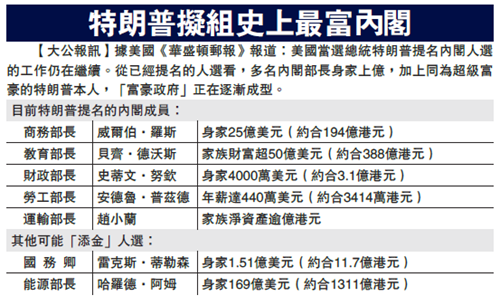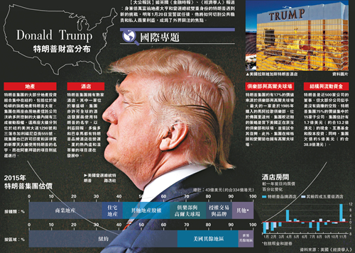 香港《大公報》援引英國《金融時報》、《經濟學人》報道稱,身兼億萬富翁地產大亨和當選總統雙重身份的特朗普遇到新的挑戰,明年1月20日宣誓就任后,他將如何切割公共職責和私人商業利益,成為了外界關注的焦點。