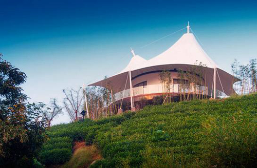 以白茶養生為主題的安吉帳篷客?溪龍茶谷度假酒店,藏身于萬畝白茶園中,得天地之靈氣,水土之滋養。游客在清雅的茶谷中,或漫步、或采茶、抑或聞香拾趣,體驗返璞自然的生活方式。酒店設計整體風格以素雅為基調,并與當地文化及環境契合,從建筑外裝飾材料到內部裝飾,均采用當地的木、石、竹、瓦,且保留了原有建筑部分的古建形態,使其不失原味。