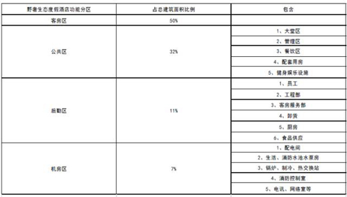 為某野奢度假酒店的功能設置關系