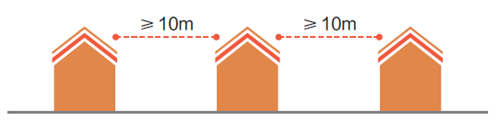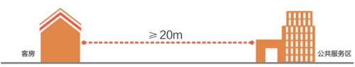 根據野奢度假酒店的特性,設計推薦客房間距值≥10米,客房與通道的間距值≥4米, 客房與公共服務區的距離值≥20米。