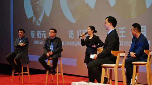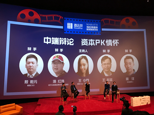 開元集團曼居CEO殷乾元、桔子水晶酒店集團華東區副總經理湯紅偉、杭州西軟信息技術有限公司北京分公司運營副總經理王小月、憶泊創始人周洋、栢高酒店集團總裁王松志中端辯論:資本PK情懷。